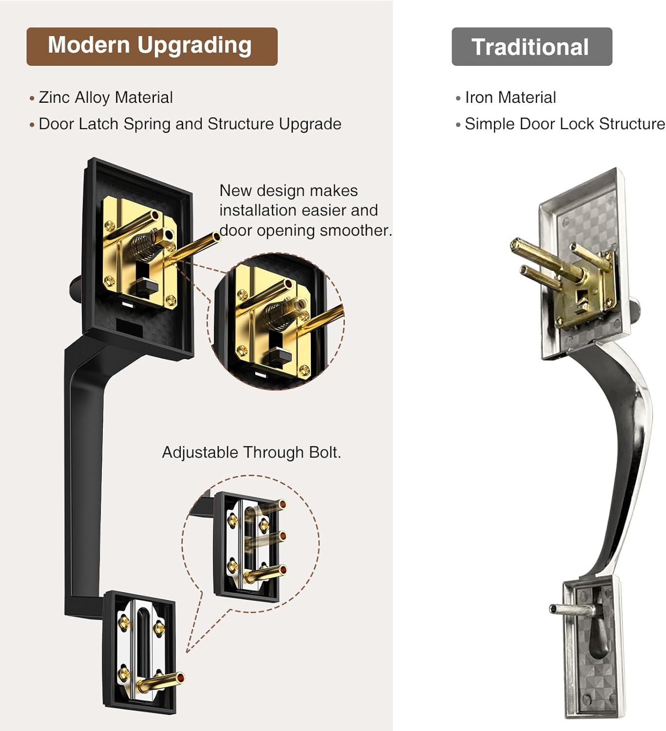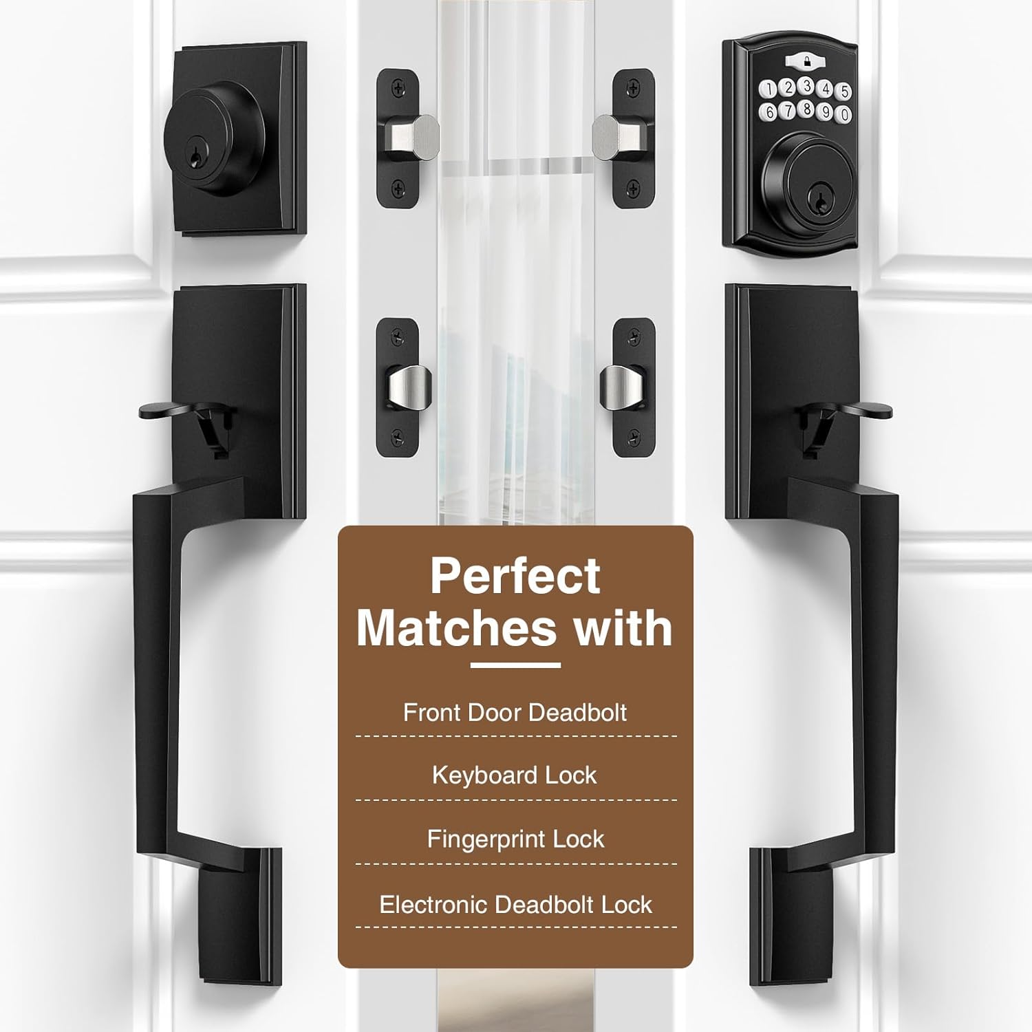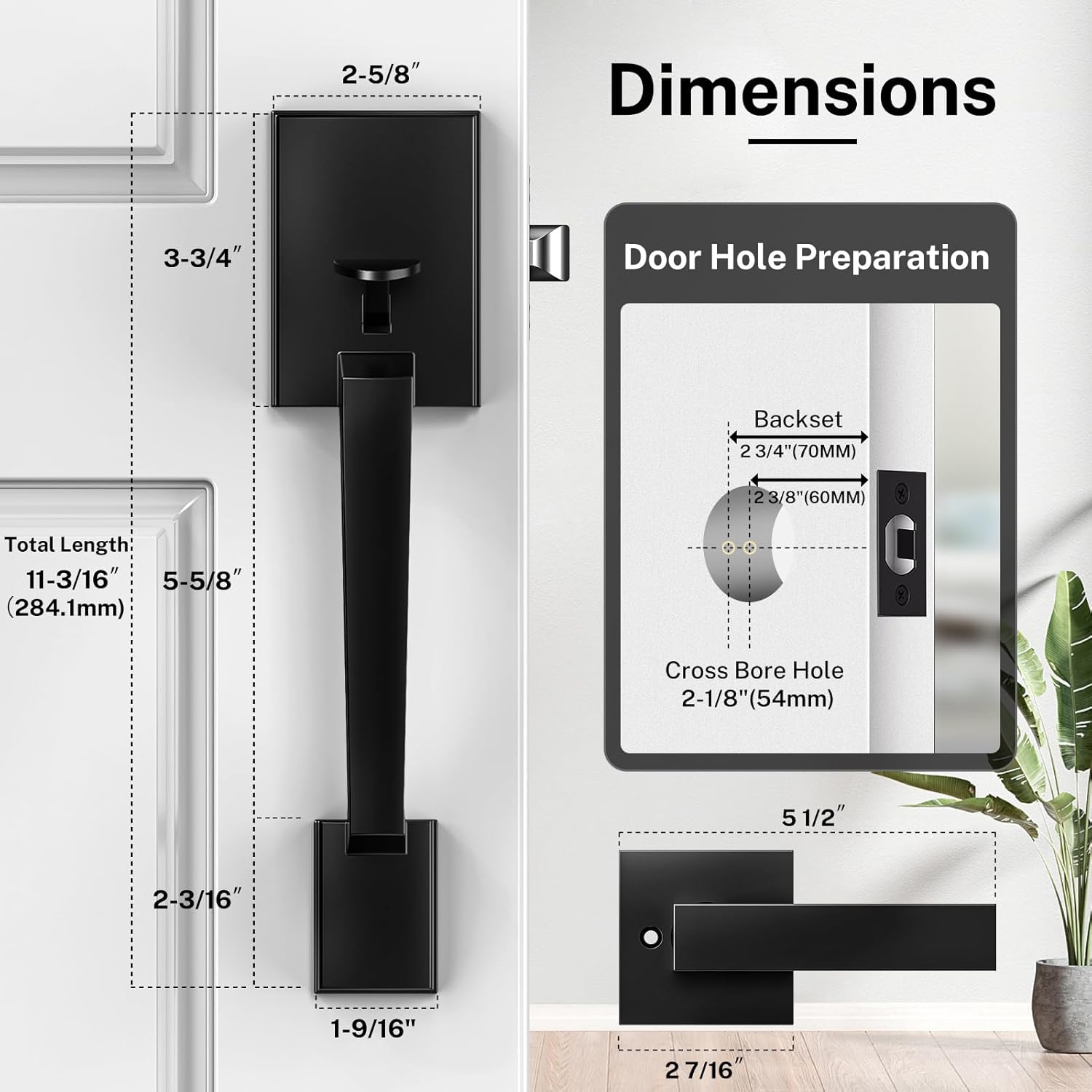 Brightify Front Door Handle, Modern Exterior Door Handle with Passage Lever, Front Entry Door Handle No Lock, Reversible for Left & Right Hand Door, Lower Half Grip - Matte Black
