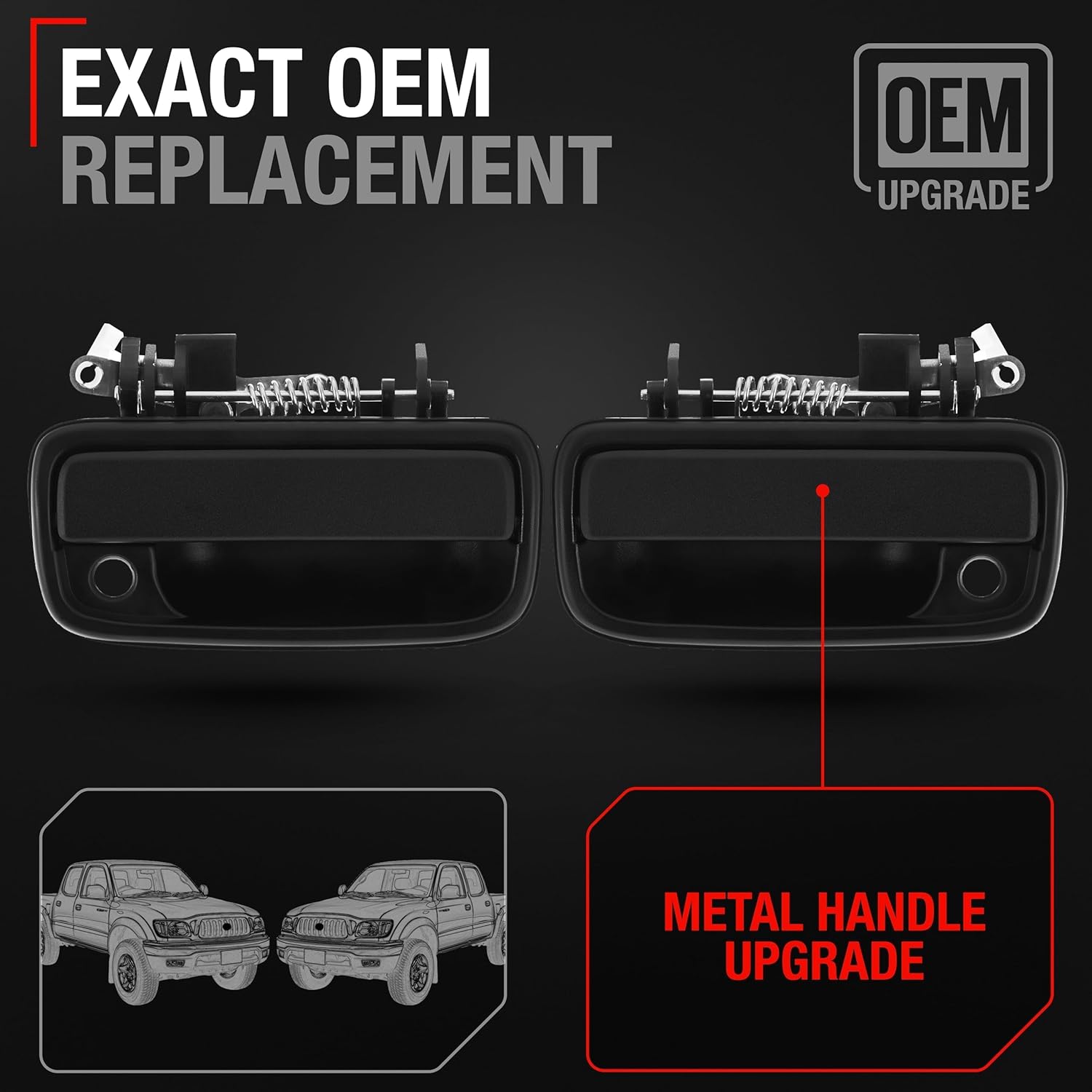 Exterior Front Driver & Passenger Door Handle Set, Upgraded Metal, Compatible with 1995-2004 Toyota Tacoma - Textured Black - 69220-35020, 69210-35020, 79345, 91318, 79344, 91319, TO1311117, TO131011