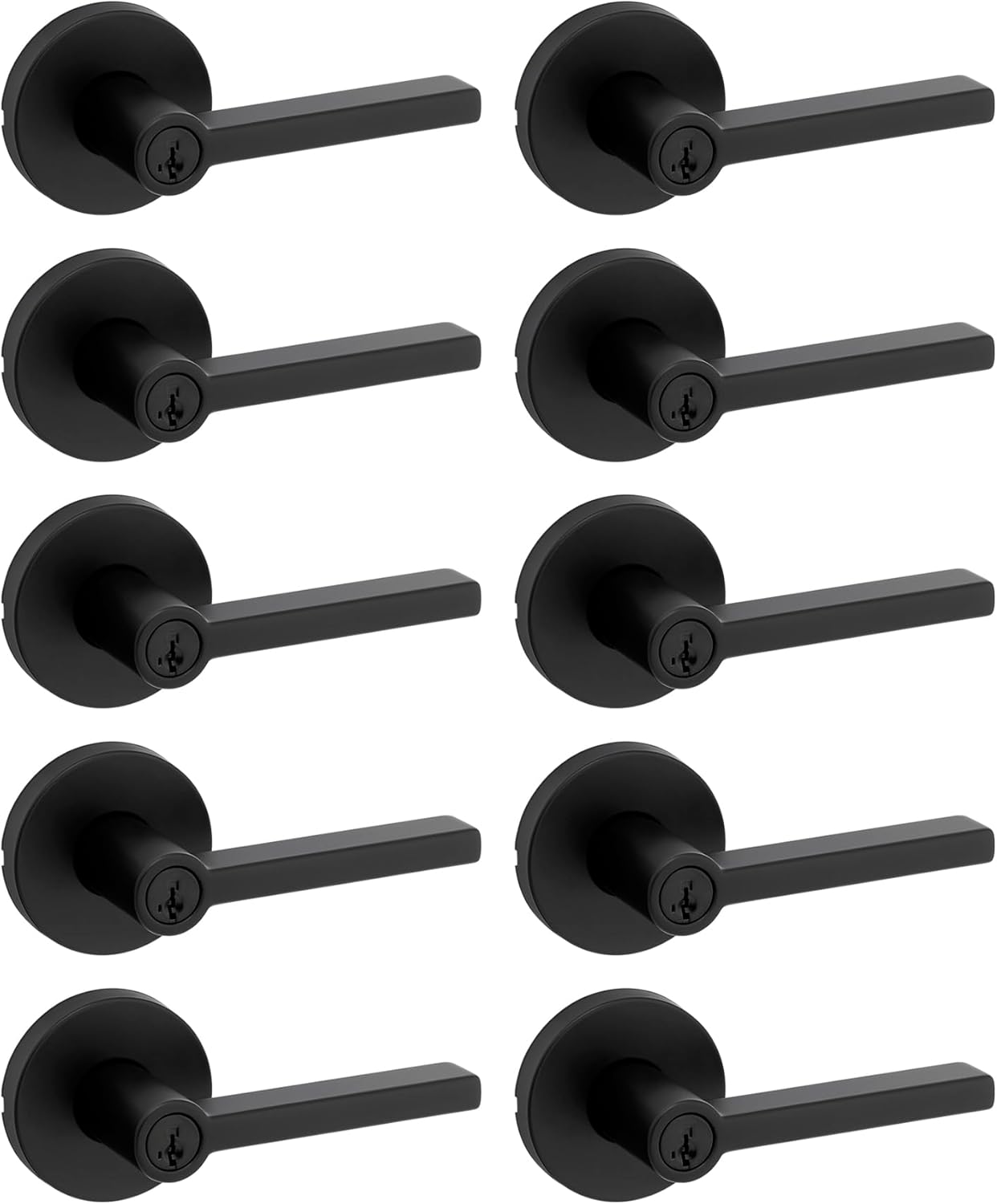 Kwikset Halifax Entry Door Handle with Lock and Key, Secure Keyed Reversible Lever Exterior, For Front Entrance and Bedrooms, Matte Black, Pick Resistant Smartkey Rekey Security and Microban