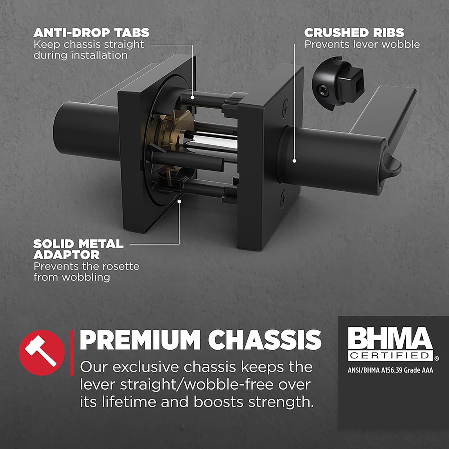 Step up to designer styles and superior security with Kwikset Signature Series products. Halifax combines sophistication and simplicity, making this design the ideal accent for a contemporary home. Both levers/knobs can be operated by a key on the outside or thumb turn on the inside. The rich tones of Matte Black add the finishing touch to this product. The Matte Black finish provides a rich and warm complement to the product’s style.