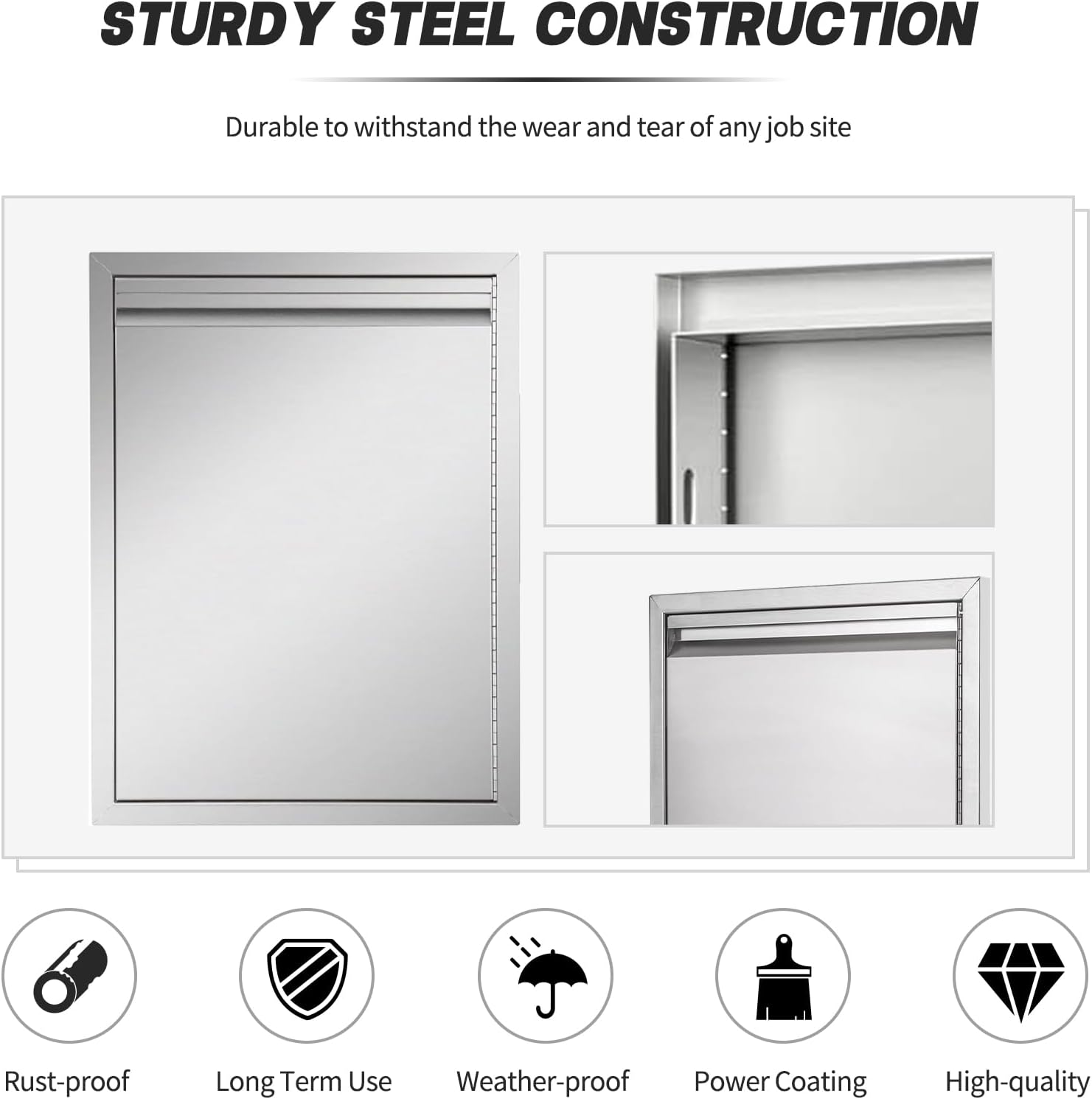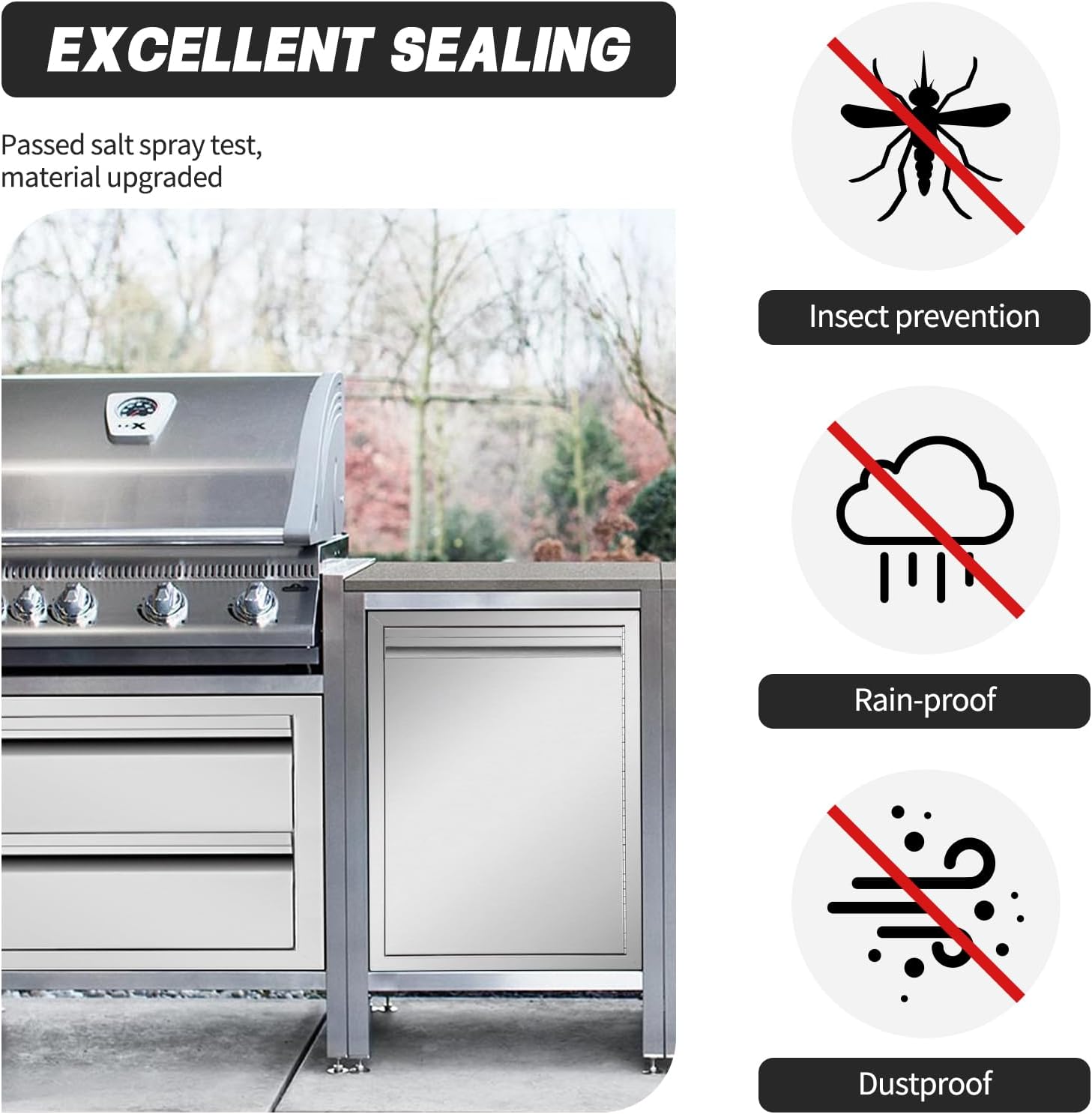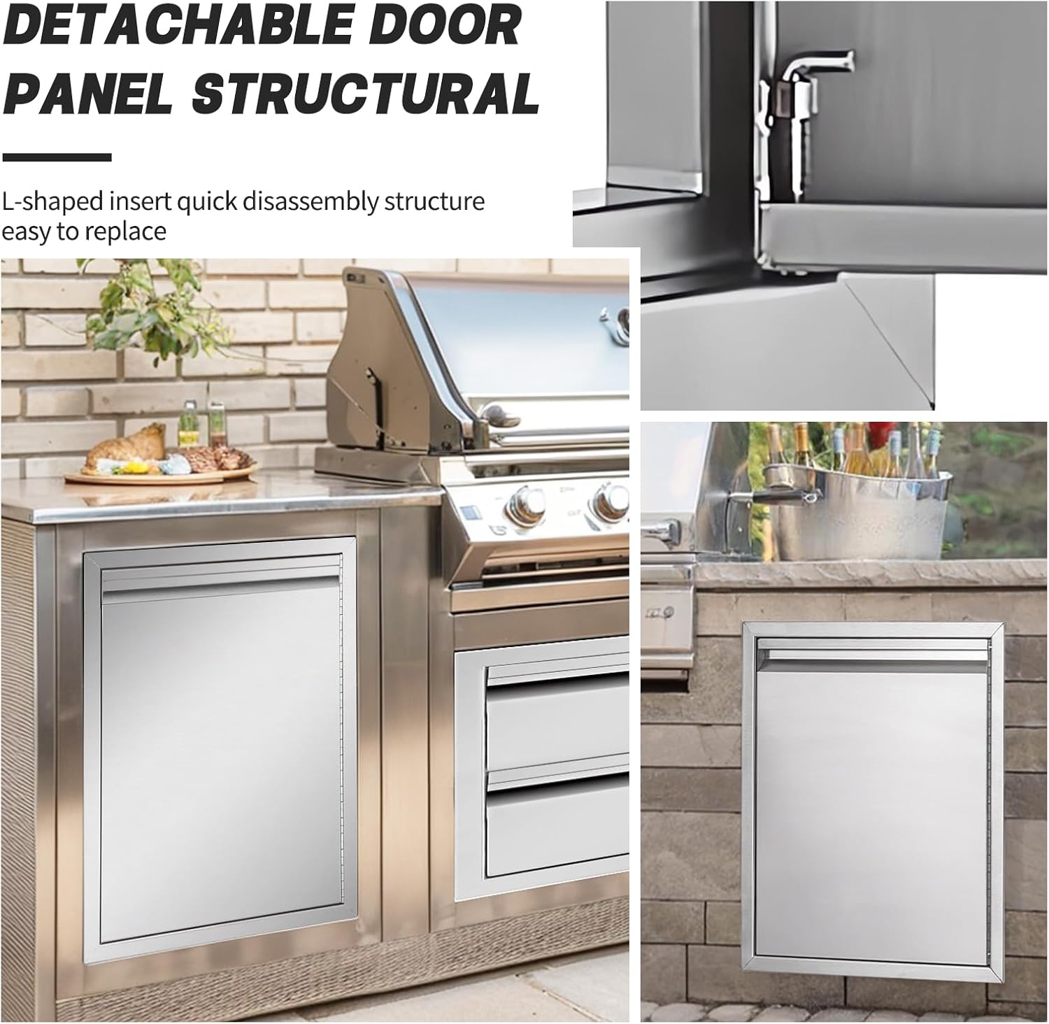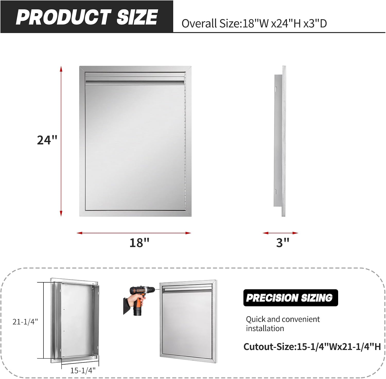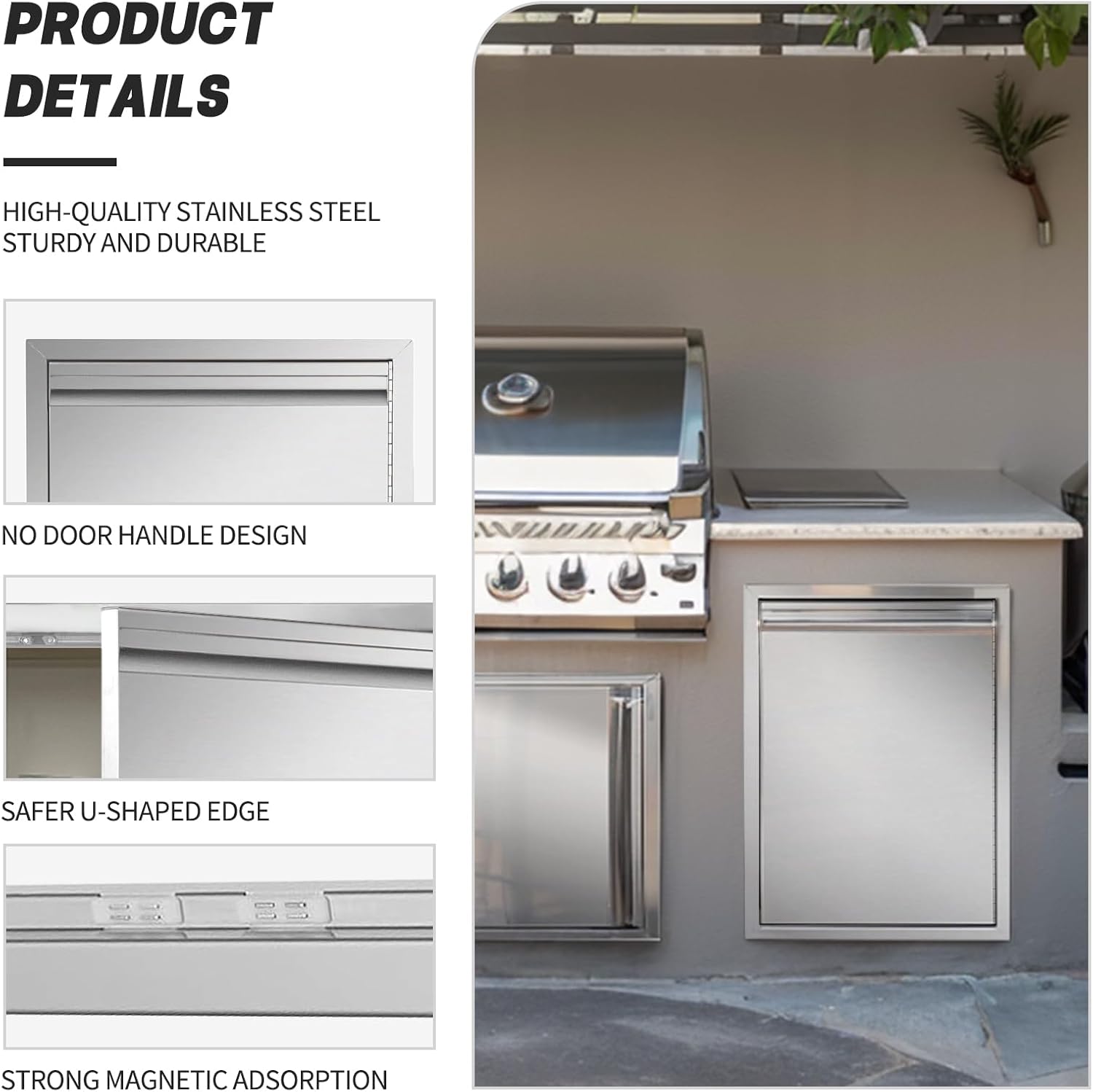 Outdoor Kitchen Single Access Door, 18W x 24H, Stainless Steel, Modern Style, Right-Opening