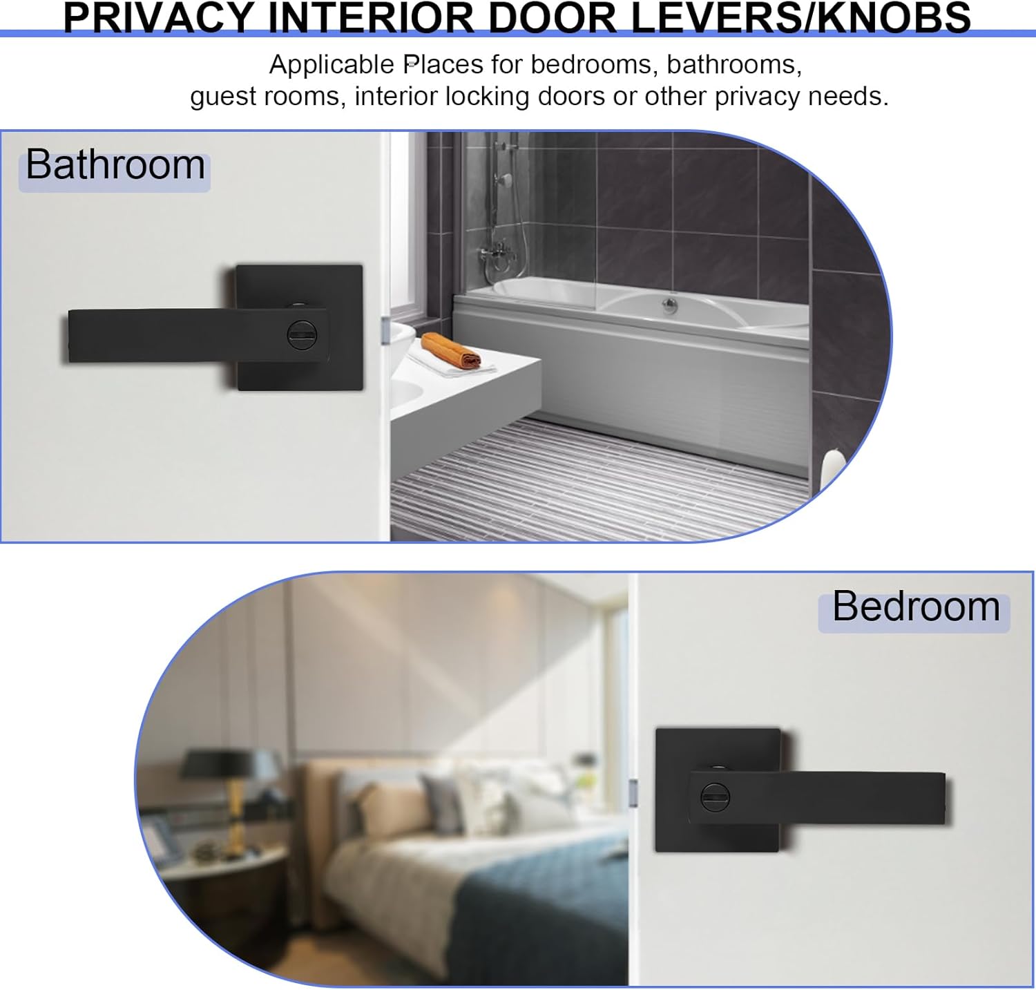 Privacy Door Levers, 8 Pack Matte Black Door Handles Heavy Duty Bed and Bath Door Locks Interior Keyless Locksets, Reversible for Left Right Handed Doors