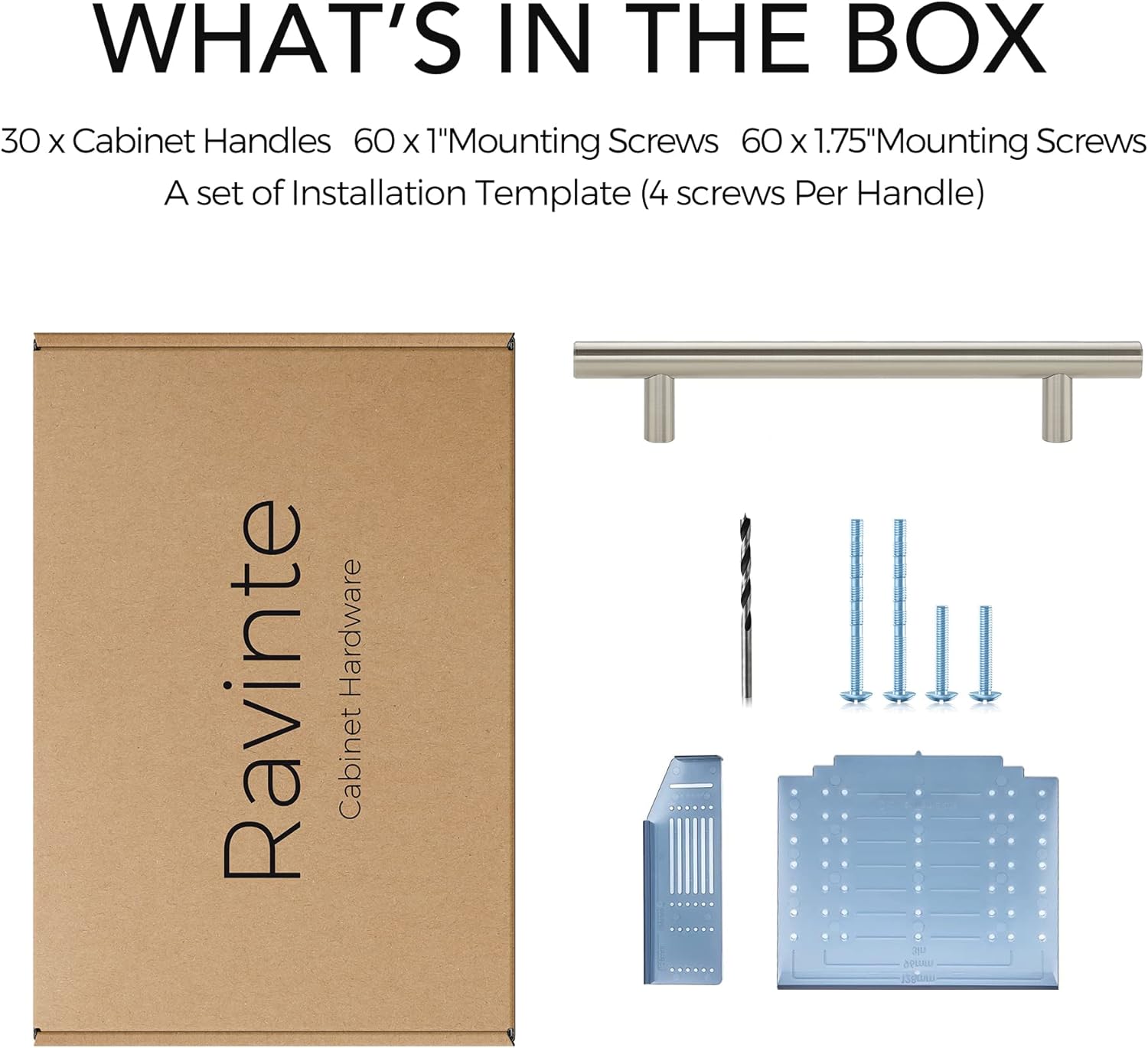 Ravinte 30 Pack | 7.38'' Cabinet Pulls Brushed Nickel Stainless Steel Kitchen Drawer Pulls Cabinet Handles 7-3/8”Length, 5” Hole Center with Mounting Template