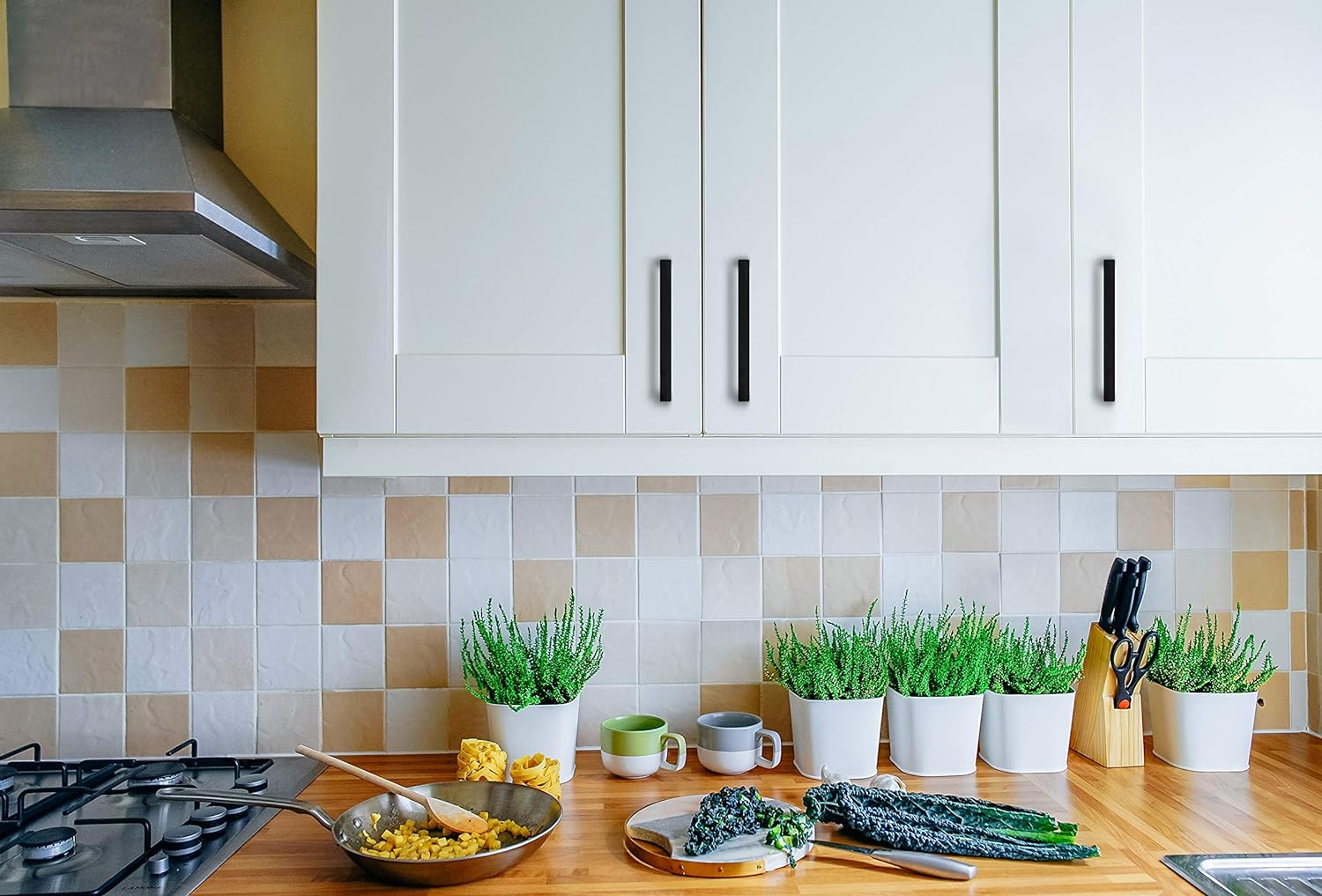 Ravinte 30 Pack Solid 5 Inch Kitchen Square Cabinet Handles Matte Black Pulls Drawer Pulls Kitchen Cabinet Hardware Flat Black Handles