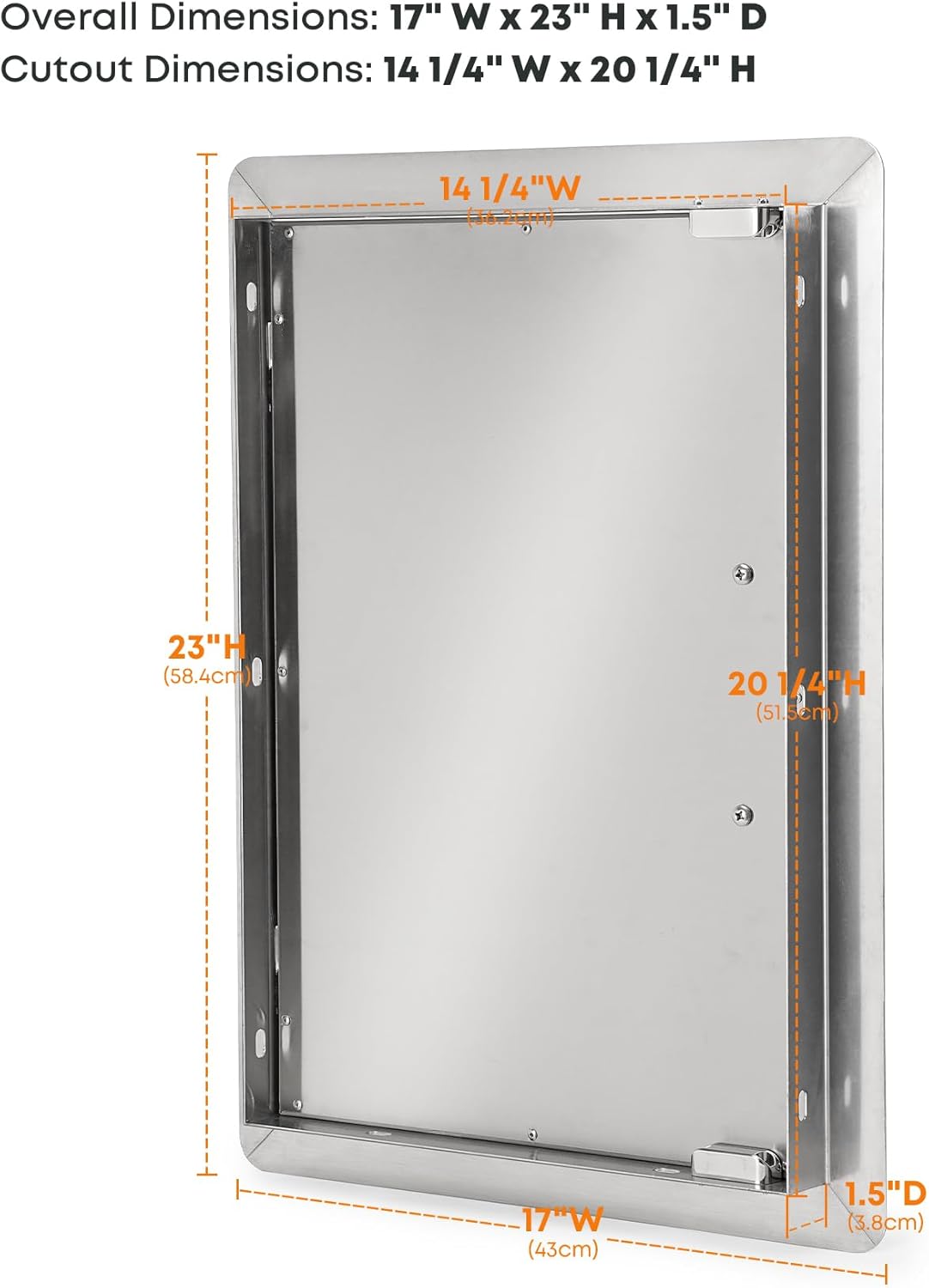 - Material: Stainless Steel Frame & Galvanized Steel Door