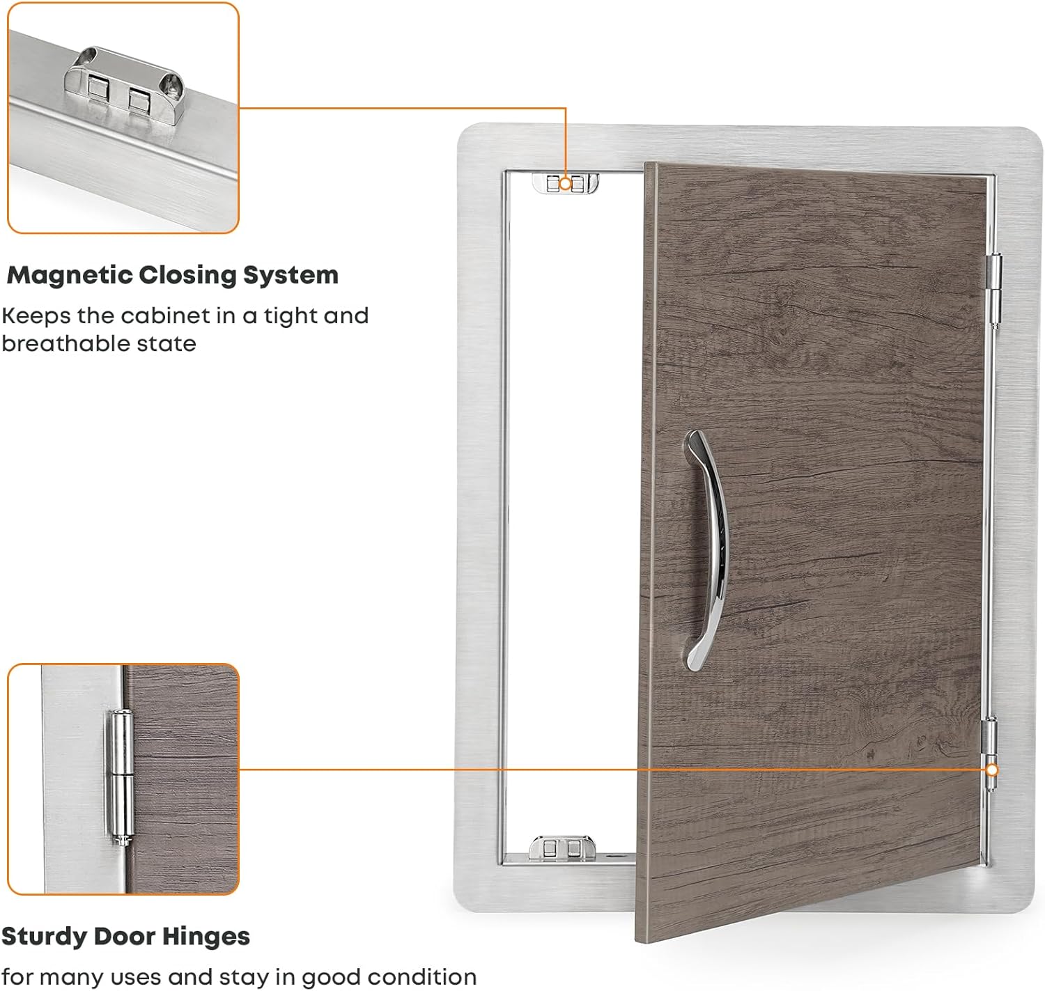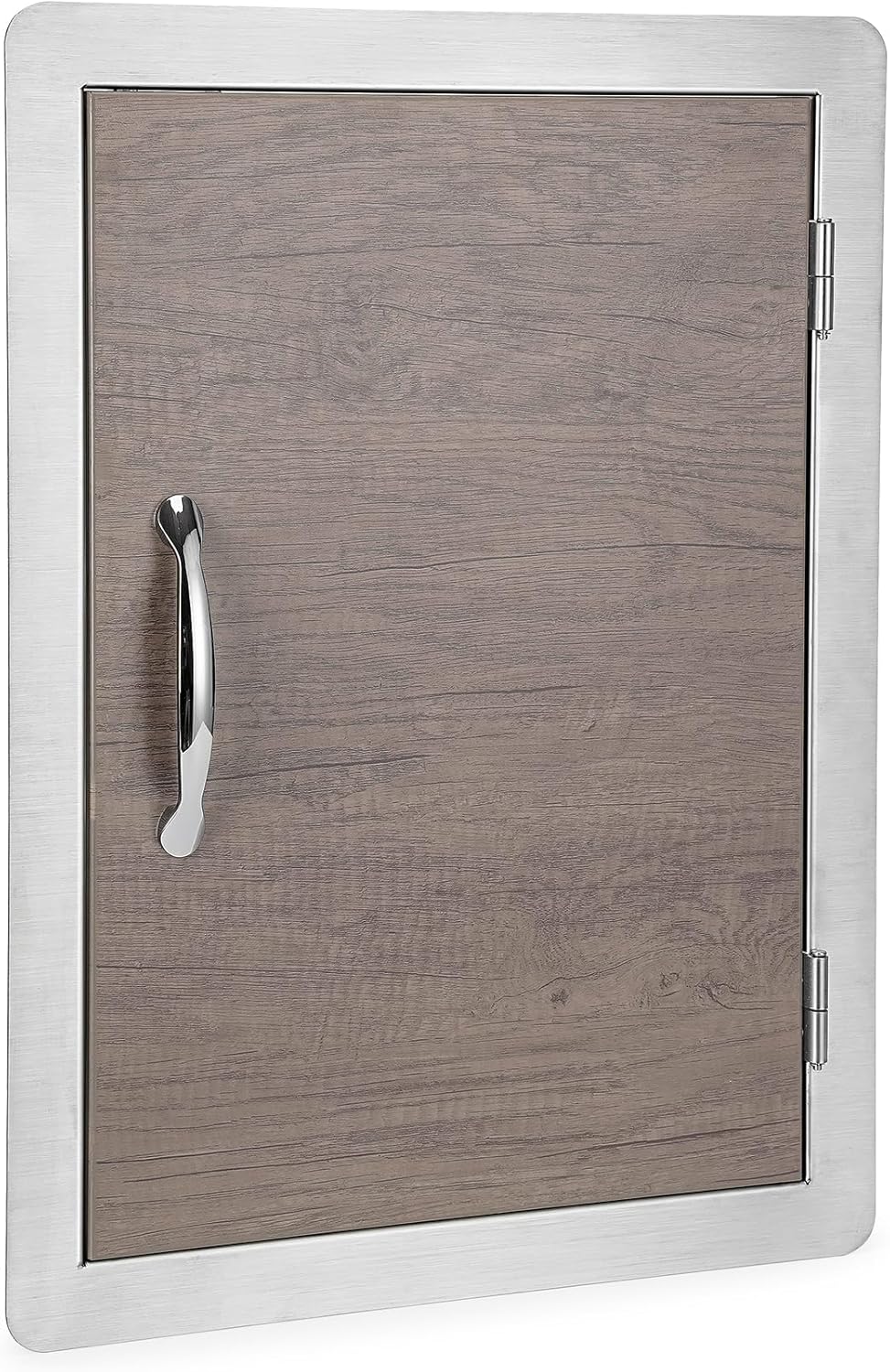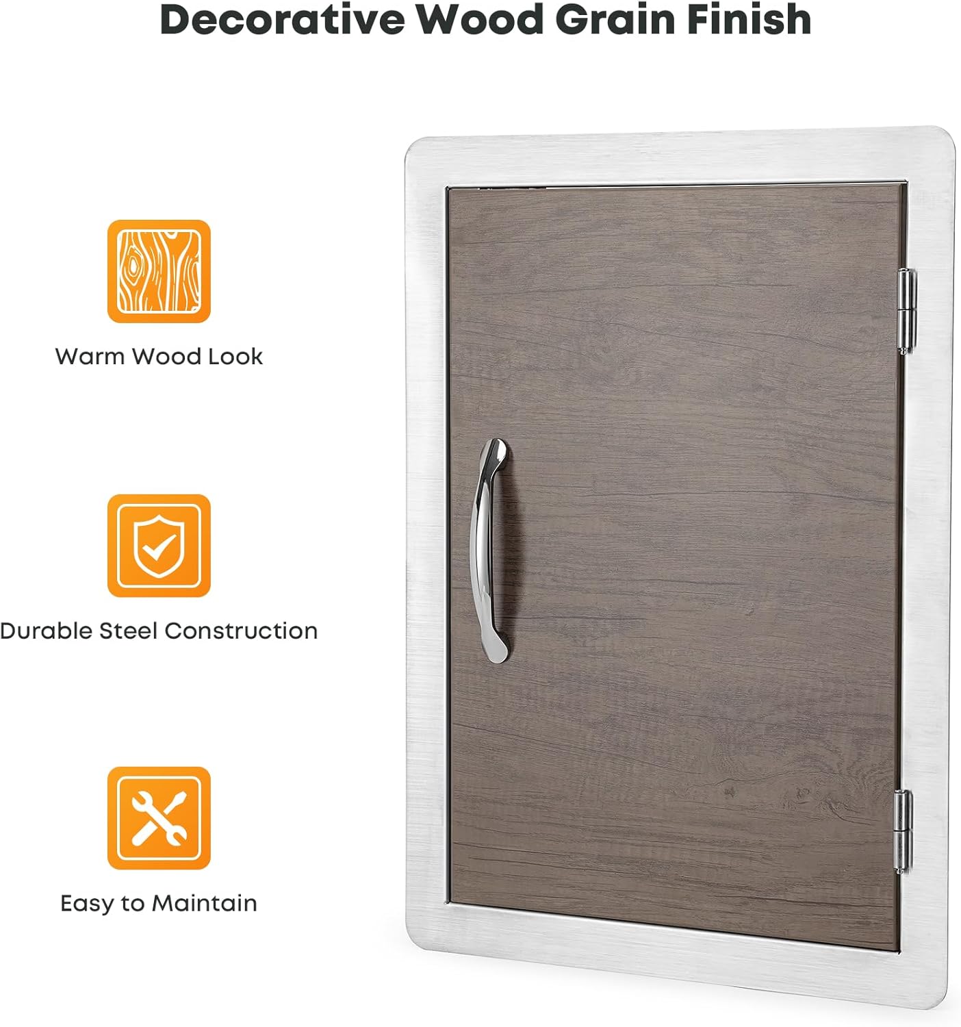 Stanbroil Outdoor Kitchen Doors 17" W x 23" H, Single BBQ Access Door Wood Grain Vertical Door for BBQ Island, Grill Station, Outdoor Cabinet