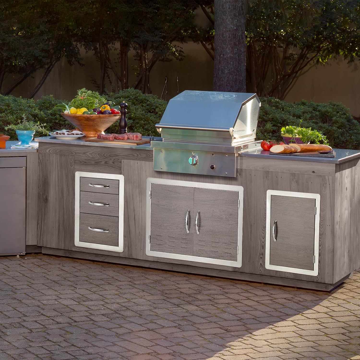 The Stanbroil outdoor kitchen doors with decorative wood grain finish and high quality stainless steel frames are more sturdy and durable, with improved resistance to rust and scratches. The well-designed imitation woodgrain finish adds a natural, warm feel to any outdoor cooking area.