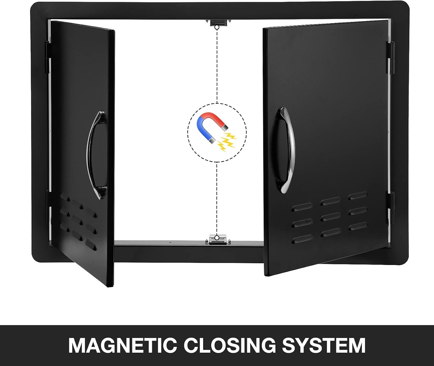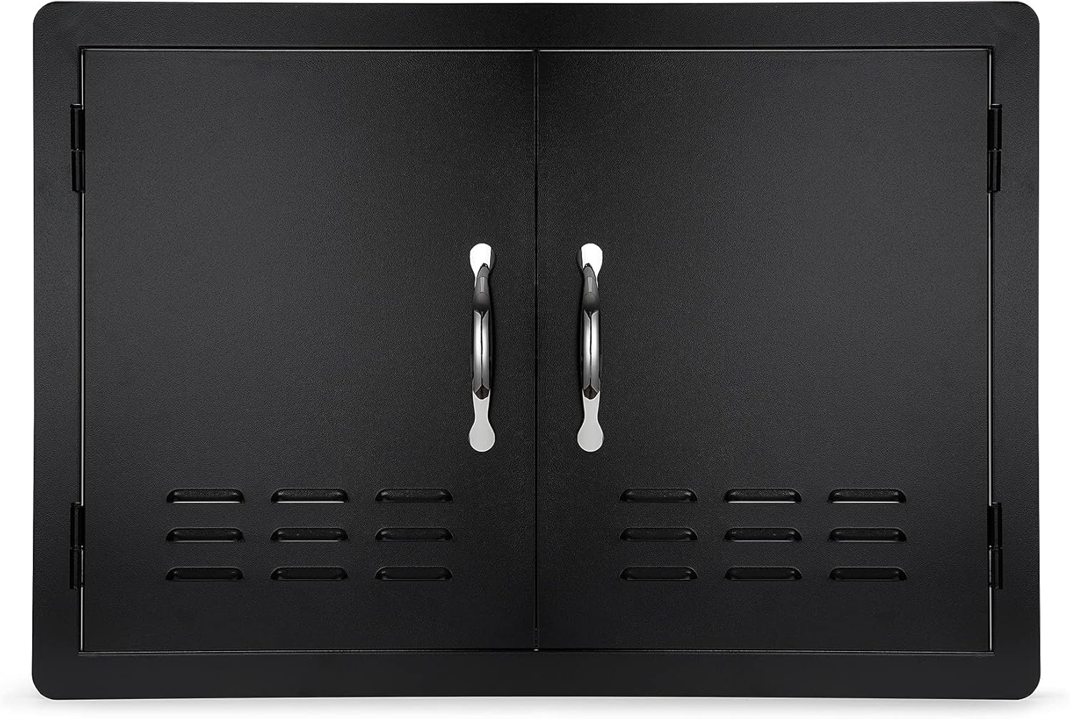 Stanbroil Outdoor Kitchen Doors BBQ Access Door 30" W x 21" H - Wall Construction Double Door Flush Mount for BBQ Island, Grilling Station, Outside Cabinet - Black