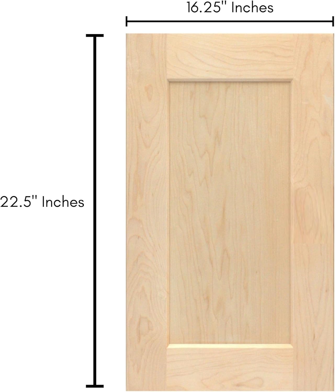 Unfinished Maple Shaker Cabinet Door Front Replacement - 16.25W x 22.5H | Ready to Paint or Stain | Solid Wood | Cabinet Door Replacement