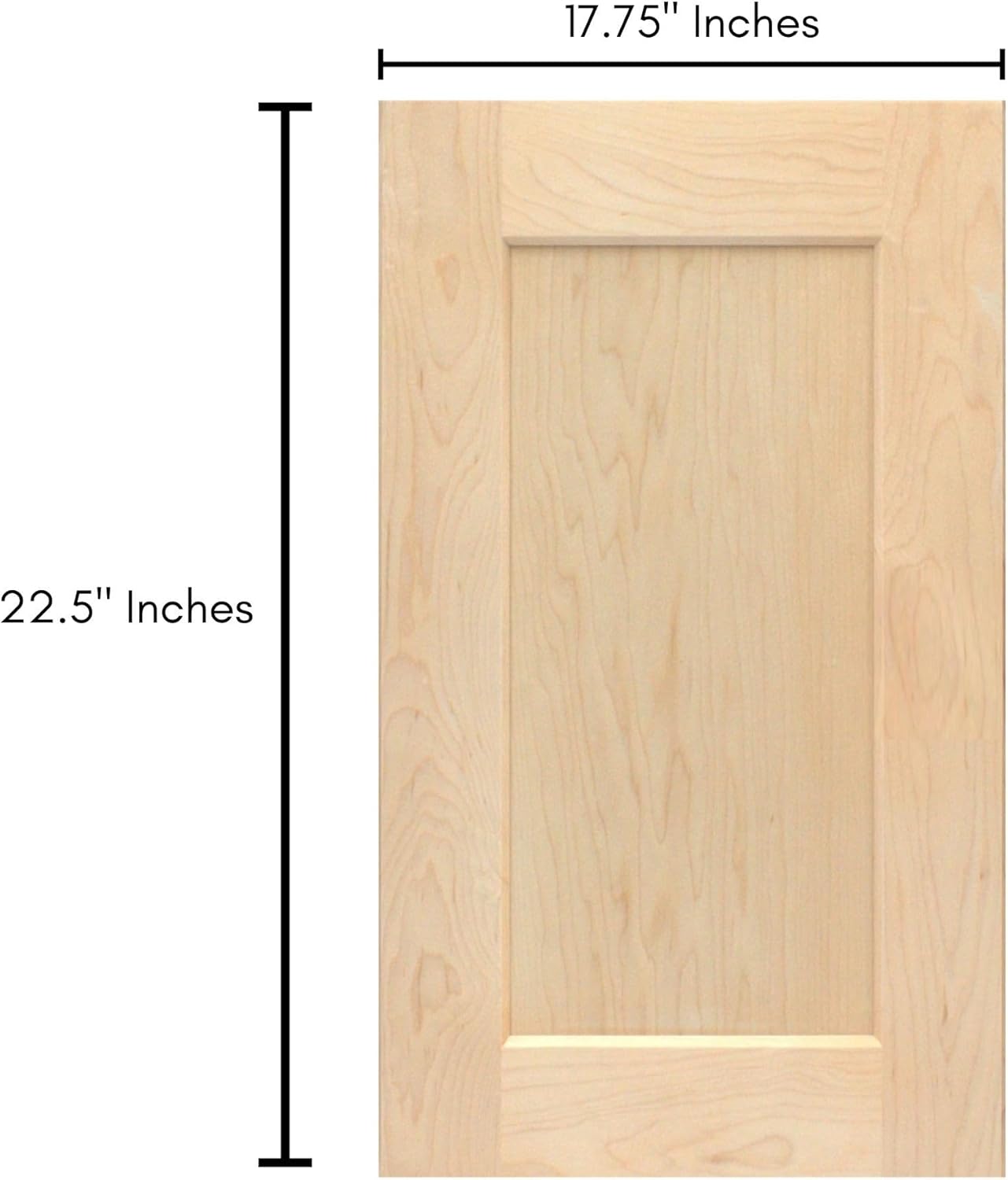 Unfinished Maple Shaker Cabinet Door Front Replacement - 17.75W x 22.5H | Ready to Paint or Stain | Solid Wood | Cabinet Door Replacement