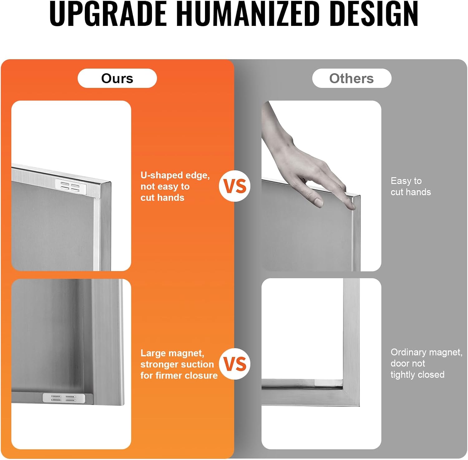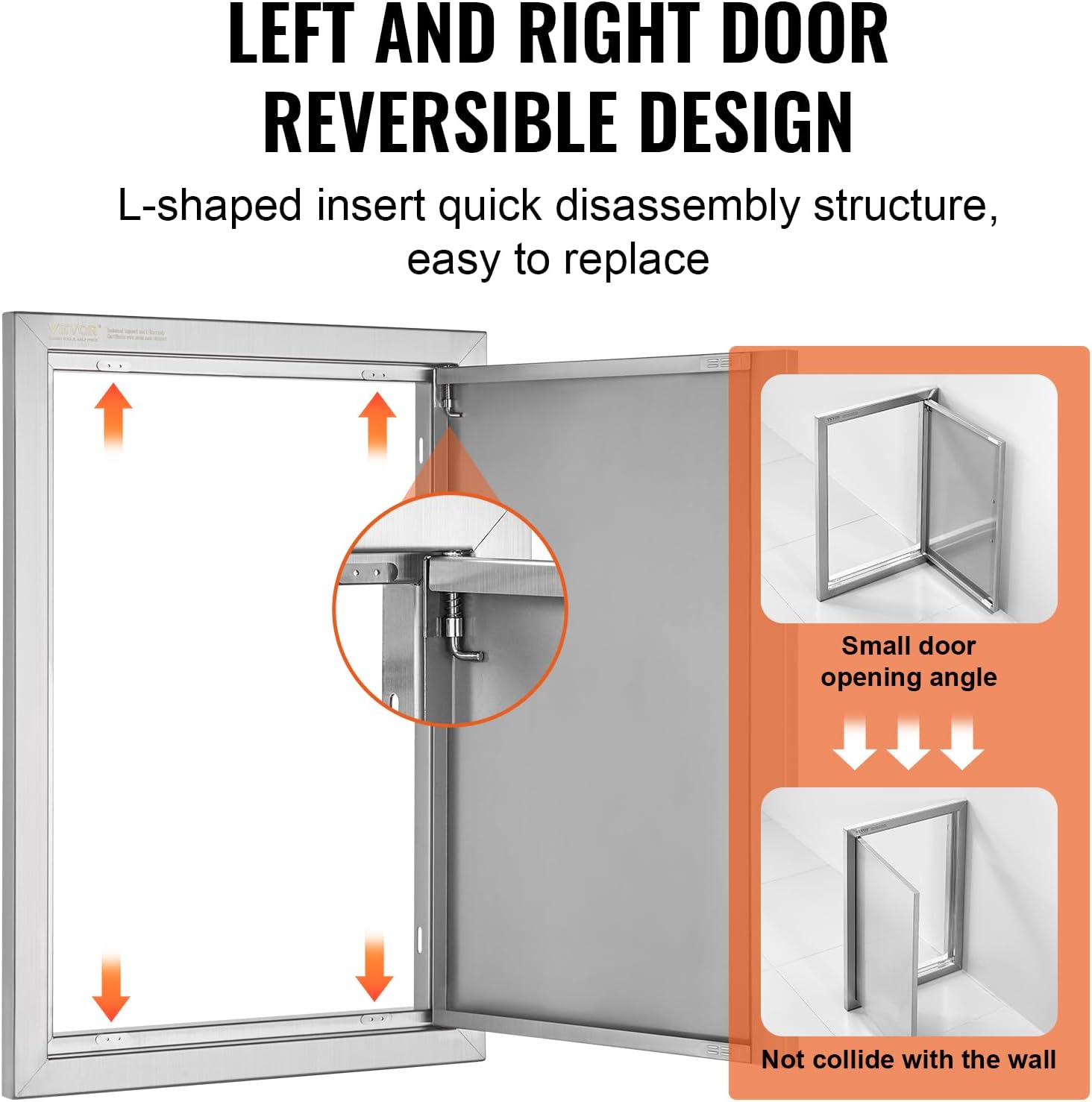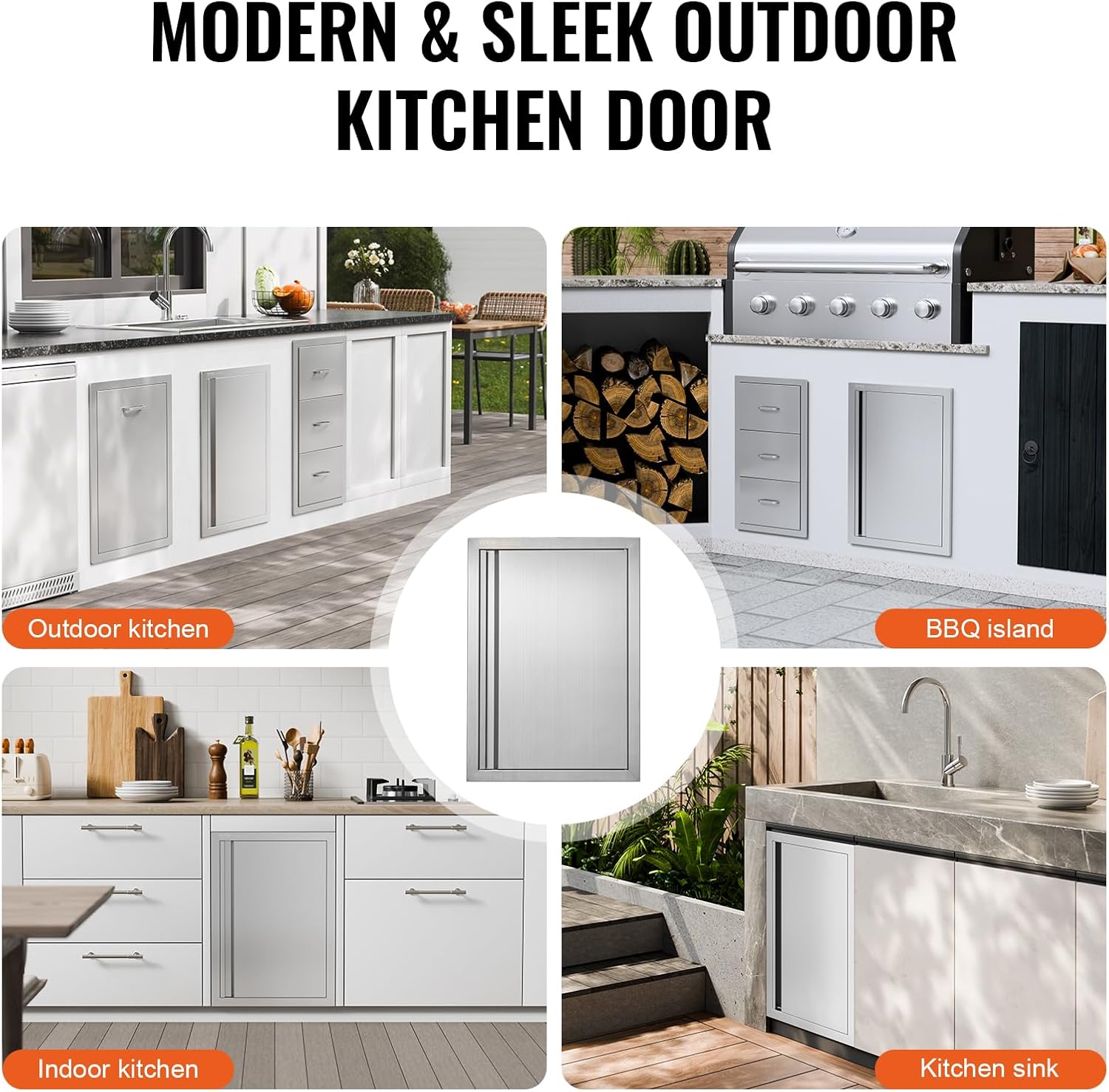 VEVOR BBQ Access Door, 17W x 24H Inch Single Outdoor Kitchen, Stainless Steel Flush Mount, Wall Vertical With Recessed Handle, for BBQ Island, Grilling Station, Outside Cabinet